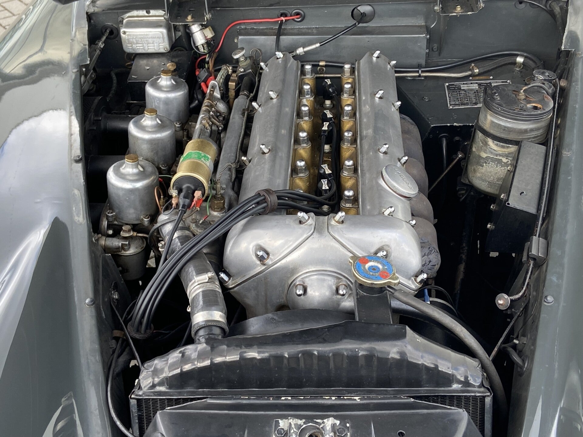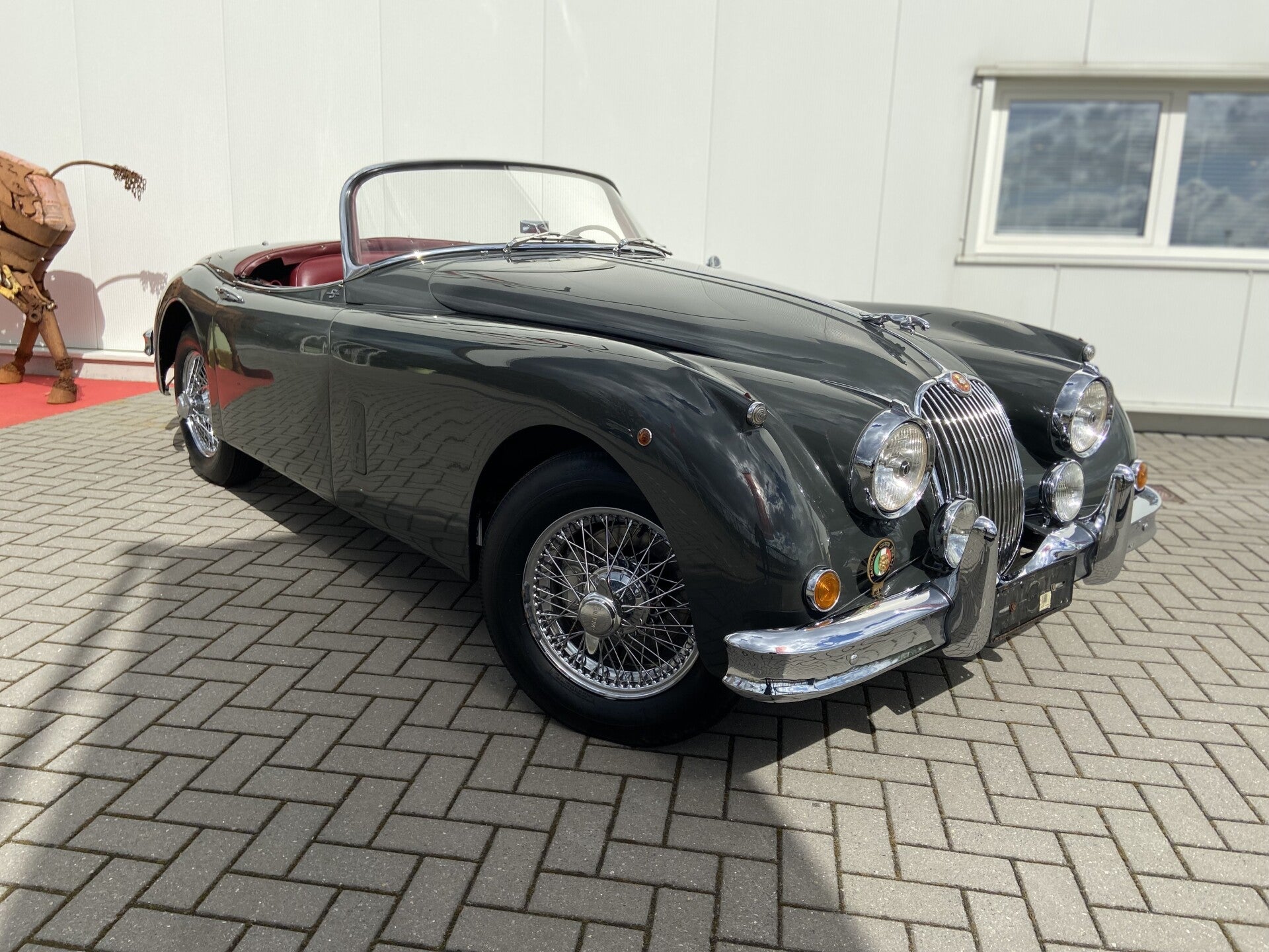 We are selling this beautiful classic XK 150 3.4 S OTS. The color combination is one of a kind on this car. The grey paint with red interior makes this Jaguar unique , the Bordeaux red softtop makes it complete. With a good 254 Hp and the 3 carbu’s , this car knows how to distinguish this 3.4 S from a normal 3.4 . very strong engine. Come to see this top classic.
